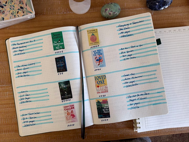 Now that habit has moved somewhere else. I’ve started keeping a handwritten reading journal where I track the books I finish. I highlight titles, jot down ratings, and print the book covers onto sticker paper so I can place them on the page next to my notes.