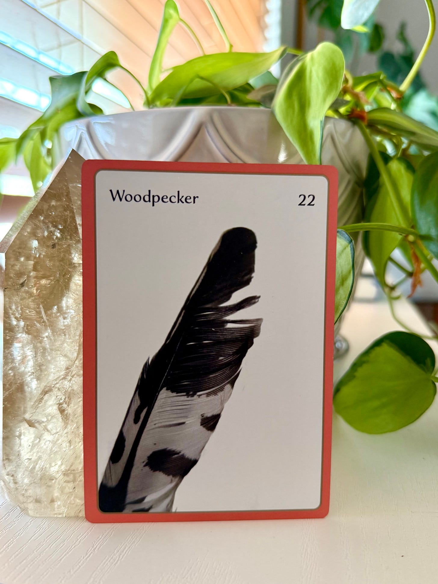 What kind of stone was the middle card? It was fitting, given my dissertation work and my favorite number is 2, the card is 22, and yes, I have been hearing a woodpecker outside my house for the last month. Dedication and persistence in deed to reach the finish line. It resonated very well, thank you.