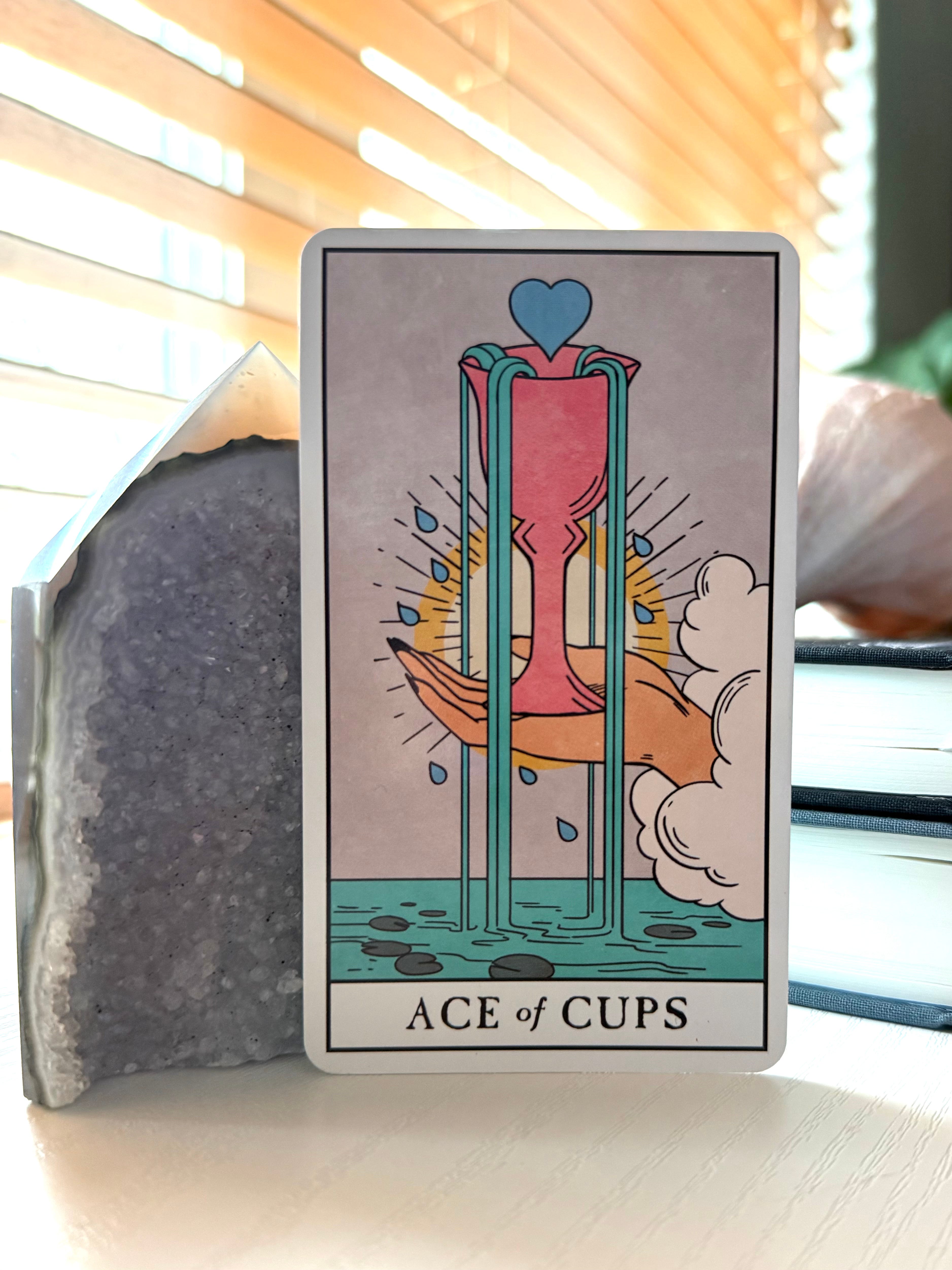 The Ace of Cups often appears as a gift—an opening to emotional nourishment, renewal, and a deeper connection to love. Sometimes this offering arrives through another person, but just as often it is something that begins within us. I see this card as a reminder of the divine presence that flows through our emotional lives, inviting us to soften, open, and receive.