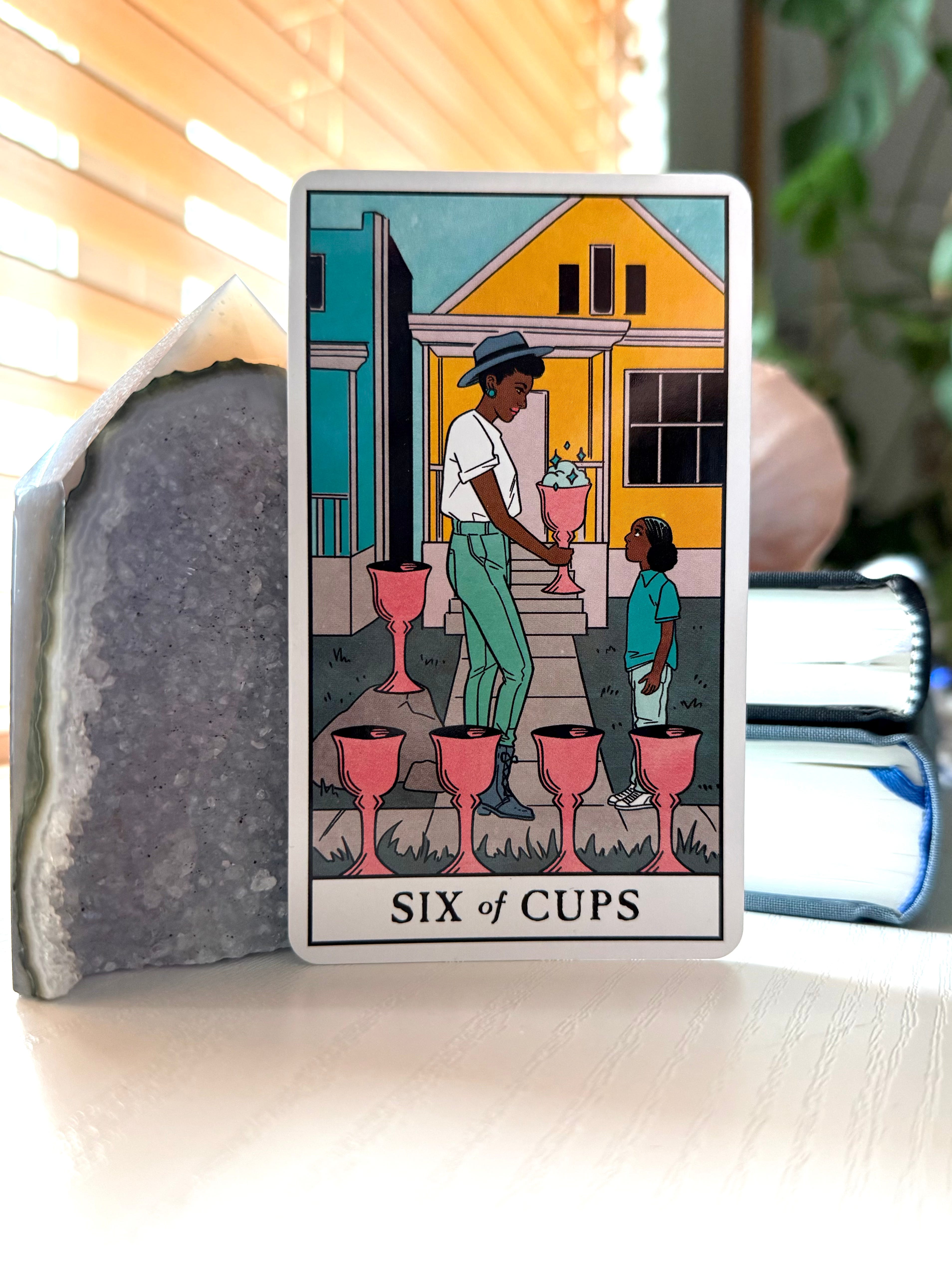 The Six of Cups often brings warm memories, nostalgia, and the gentle pull of the past. Sometimes this card feels comforting, but it can also be a little uncomfortable. Nostalgia has a way of idealizing what once was, and when we linger there too long, we may unknowingly deny ourselves the joy that is available right now.