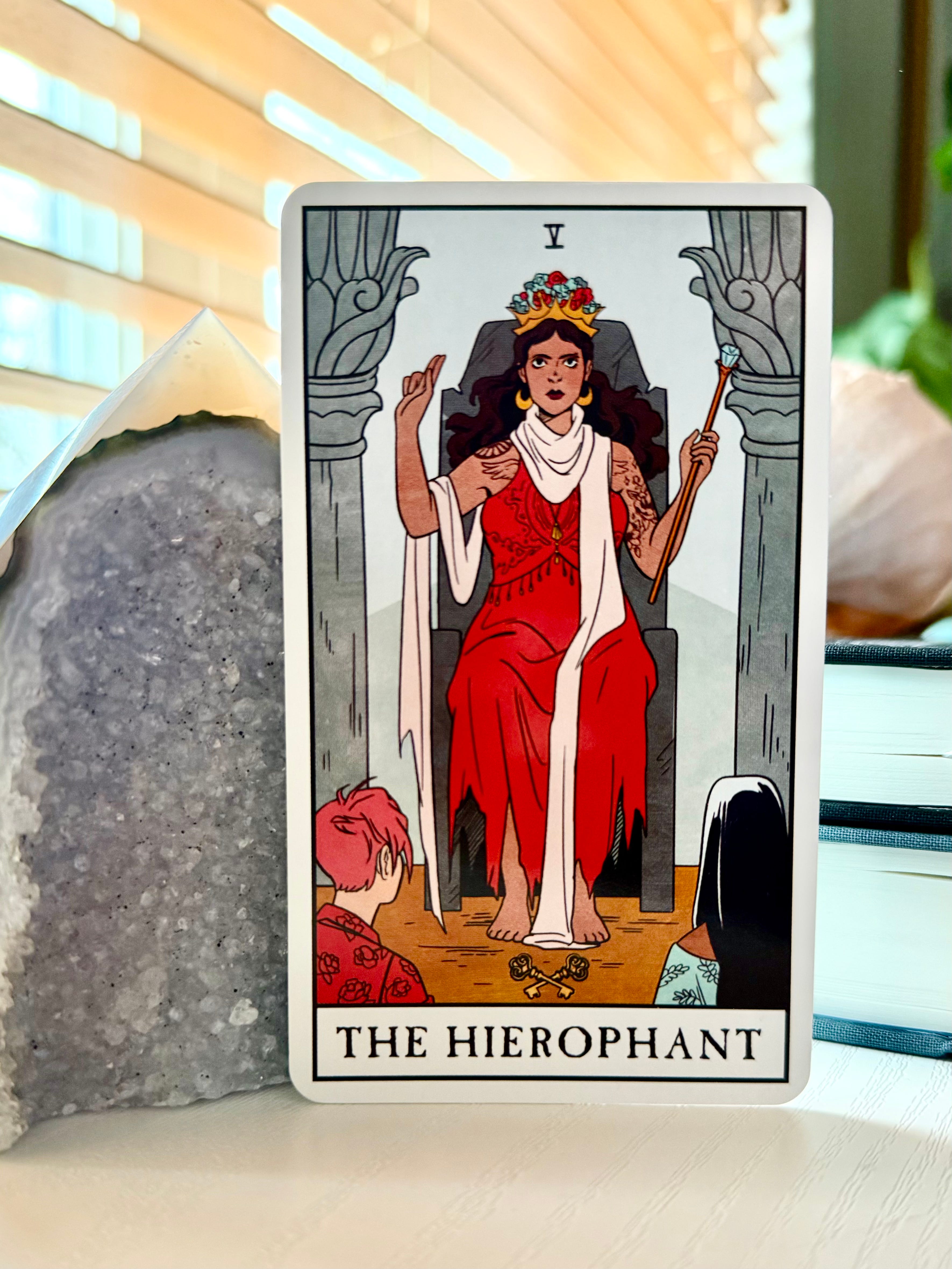 The Hierophant reminds us that wisdom moves in many directions. In every relationship or moment of exchange, we are both teachers and students. Each of us carries something worth sharing, and each of us has something to learn.